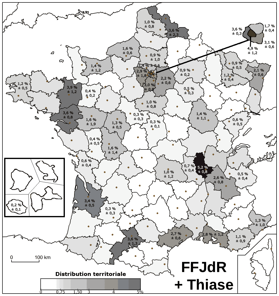 Et puisque le Thiase ne fera pas de recensement de la population rôliste en 2026, la FFJdR pourra prendre ce relais, renforcée de cette maîtrise statistique. En comparant à l’avenir le résultat départemental de chaque recensement avec cette cartographie 2022. Afin de déterminer le moment où un département mutera suffisamment pour s’écarter de l’intervalle de confiance attendu.